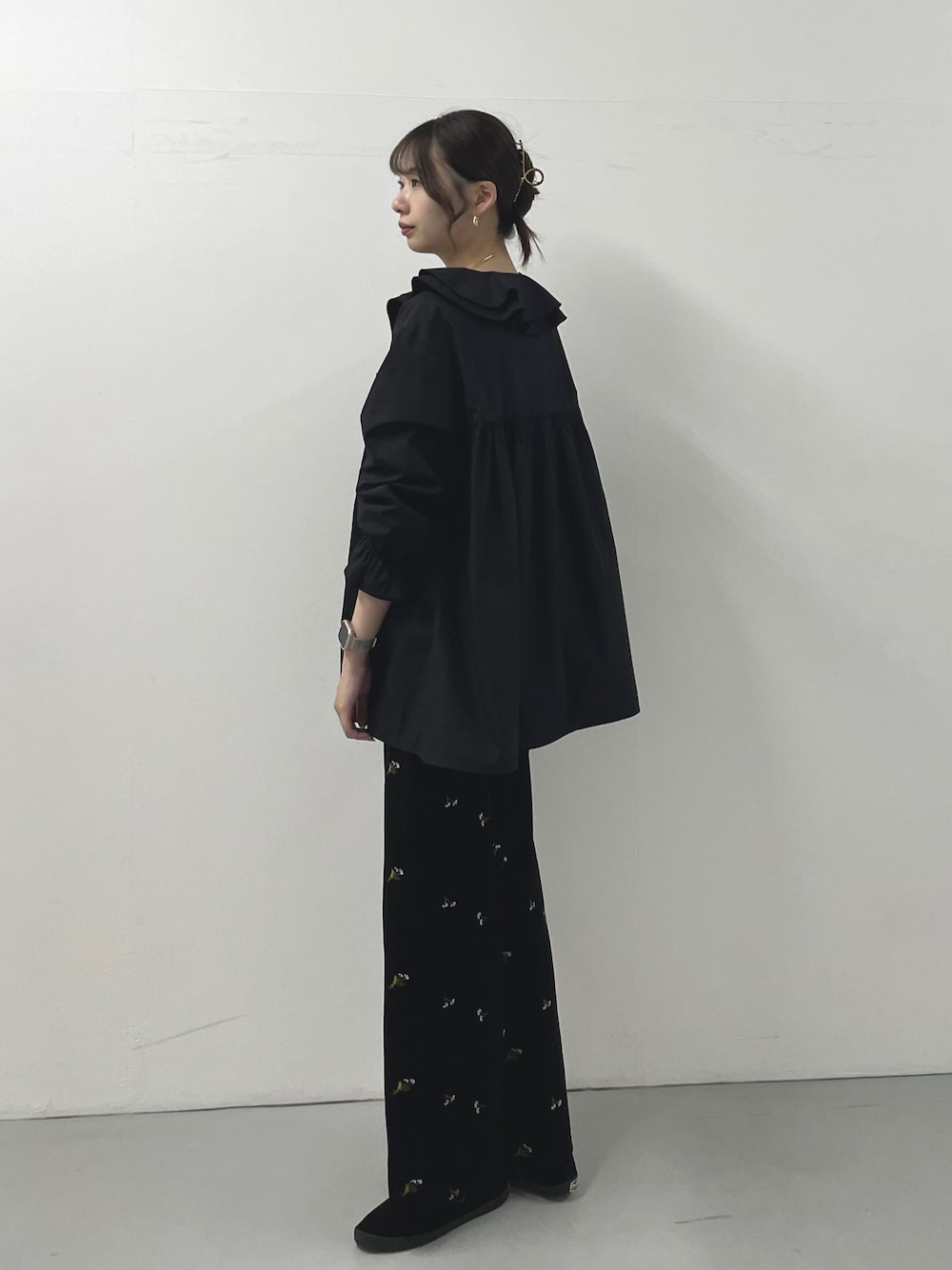 ご覧いただきありがとうございます! ハリ感があってボリュームたっぷりのブラウス予約始まってます!🖤 刺繍ベロアイージーパンツも10月下旬発売予定です! 小さな花柄がかわいい💐