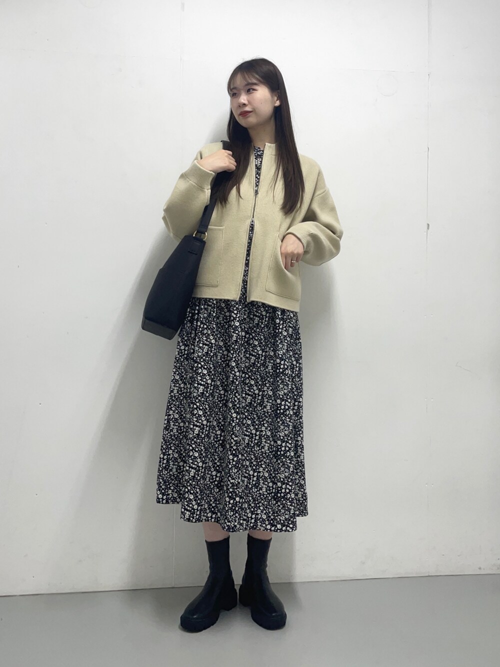 ご覧いただきありがとうございます! 大人気のニットZIPカーデとフラワープリントワンピース合わせて見ました💐 ワンピースはウエストを紐で絞れる仕様になっているので、ウエスト周りがとても楽ちんです!