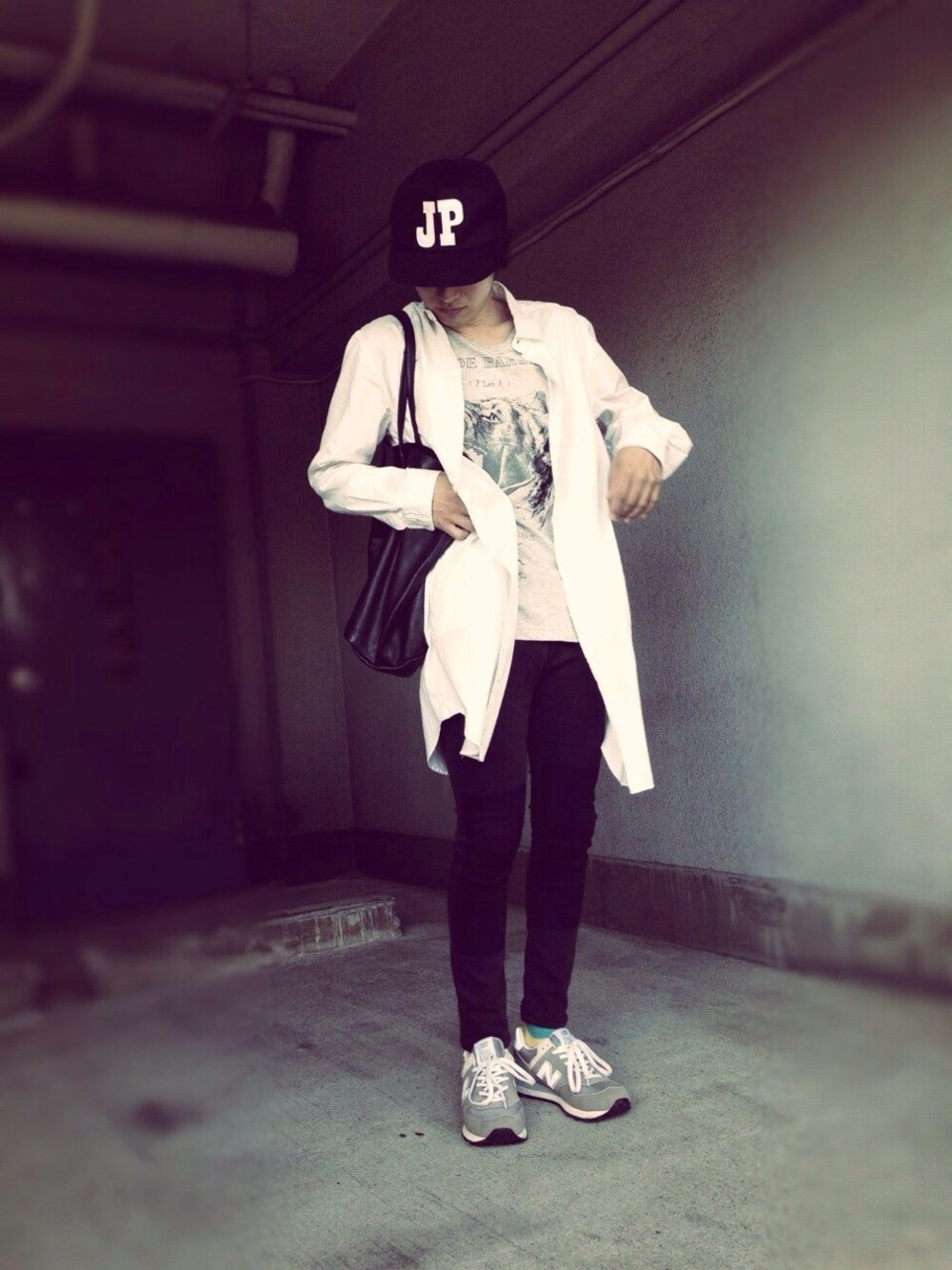 ロングシャツ:HARE パンツ:H&M Tシャツ:H&M 靴:NB キャップ:不明 バッグ:Ciaopanic