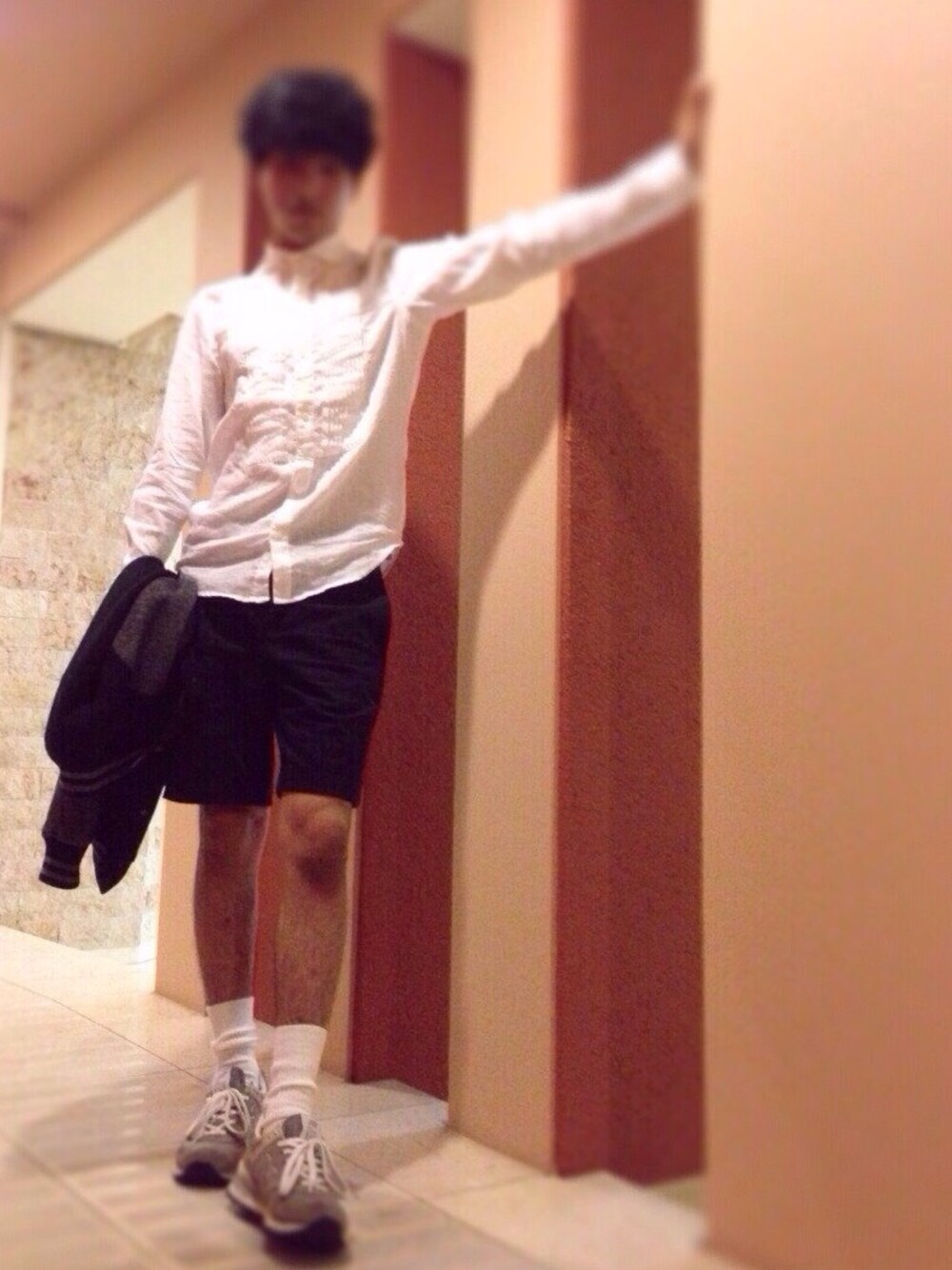 リネンシャツ:GLOBAL WORK パンツ:GU 靴下:不明 靴:NB