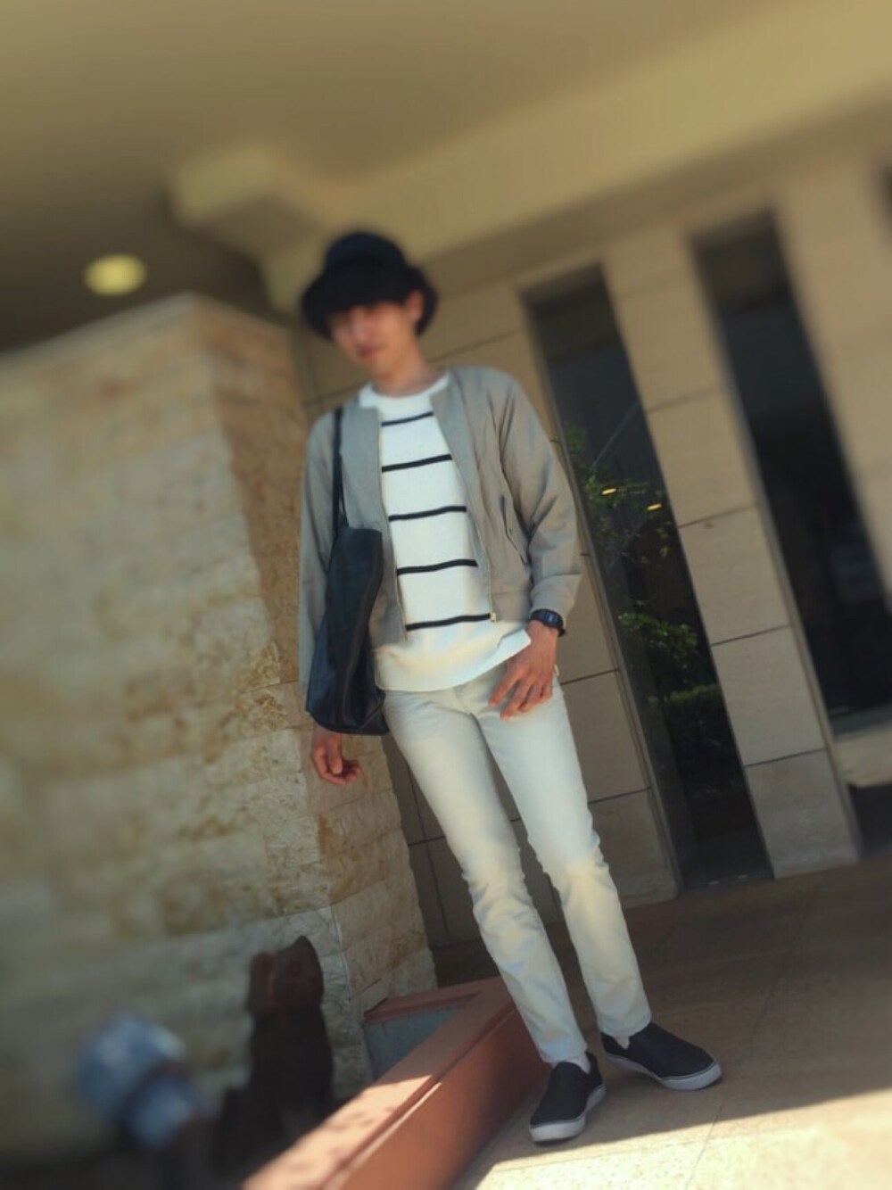 久しぶりにボーダーを着ました。 アウターは借り物です。 淡い色のデニムお気に入り。
