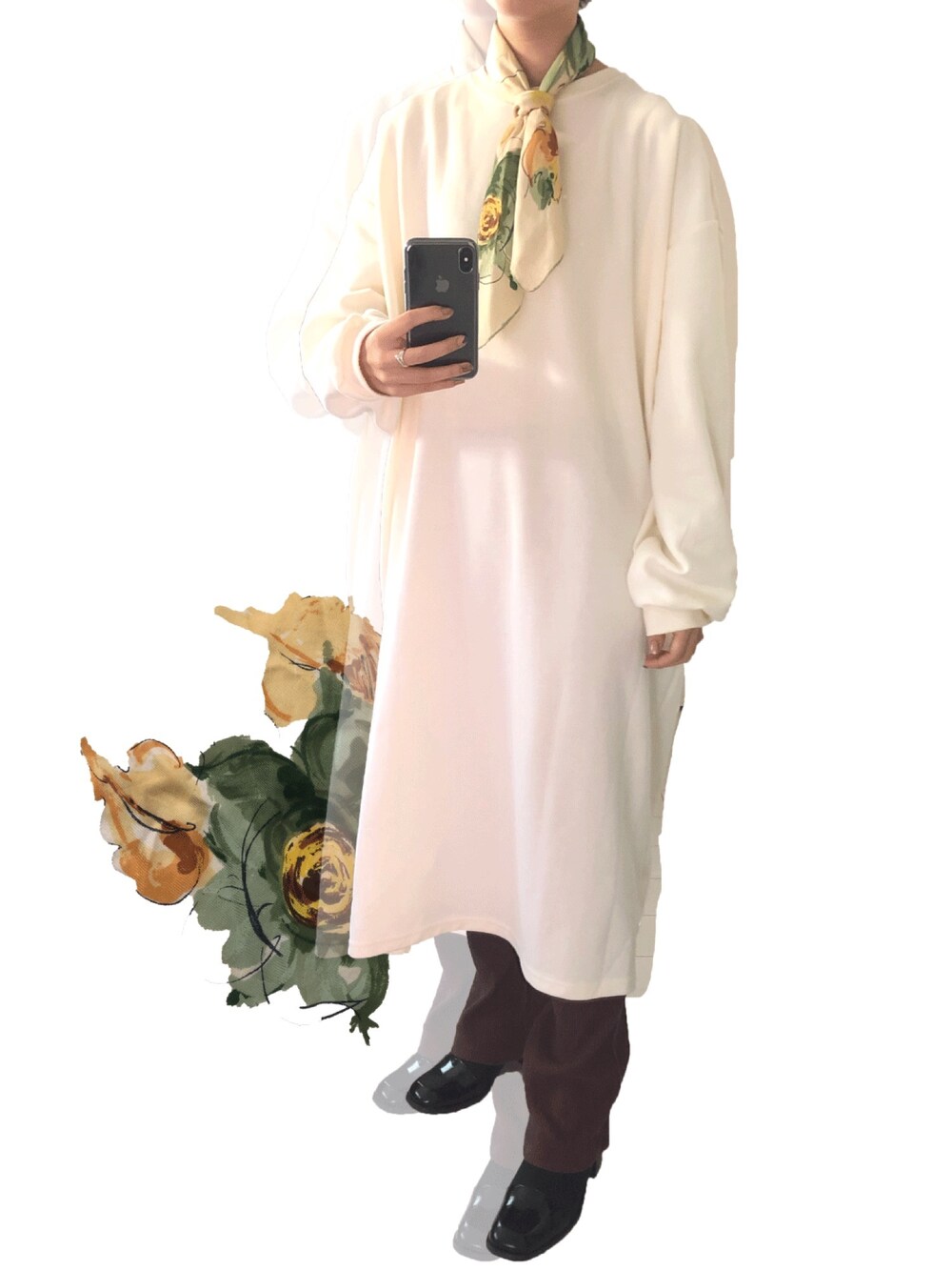 お気に入りのスカーフ、緑色のお花がかわいい