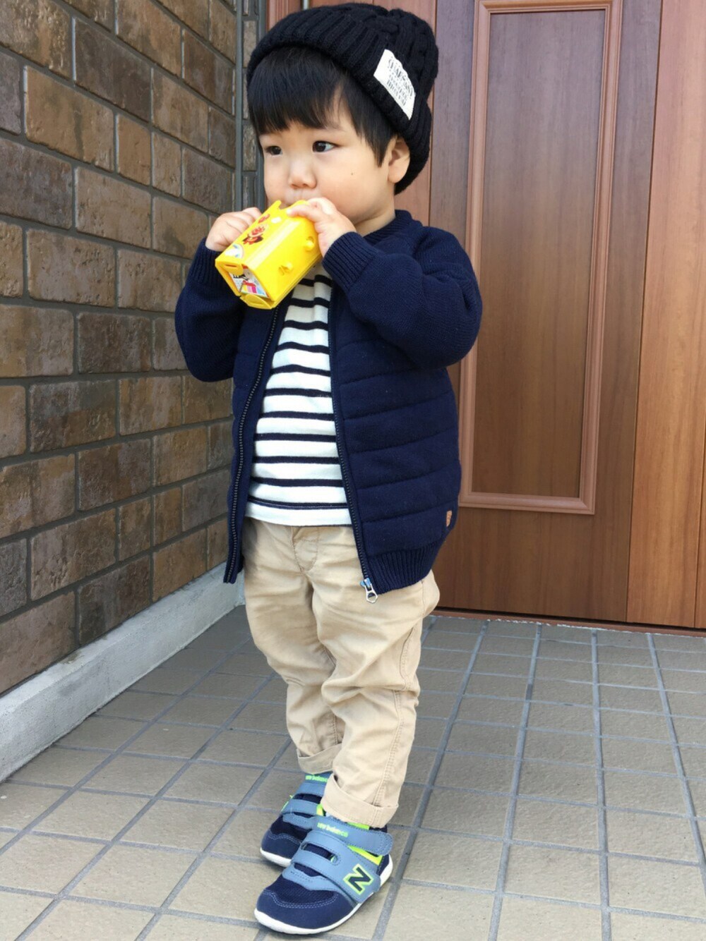 いつかのコーデ✨ このカーディガンを着せたくてわりと気温が高い日だったけど着せてみたんだっけ🎵 ん〜やっぱり可愛い💕 息子よ、ママの自己満に付き合わせてごめんね🙏😅