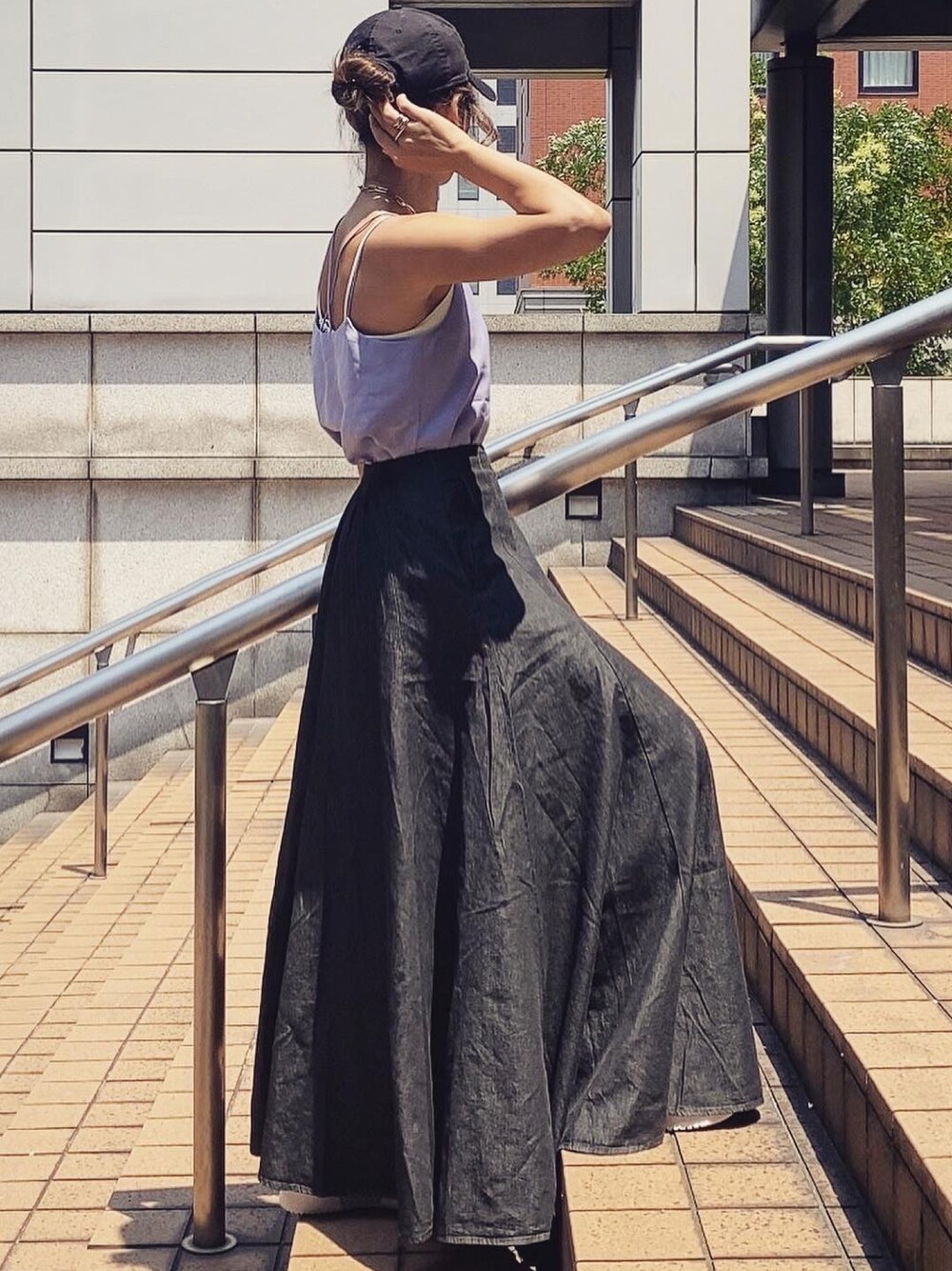 ma-のデニムスカート「アビーベーシックライトデニム[マキシフレアスカート]」を使ったコーディネート