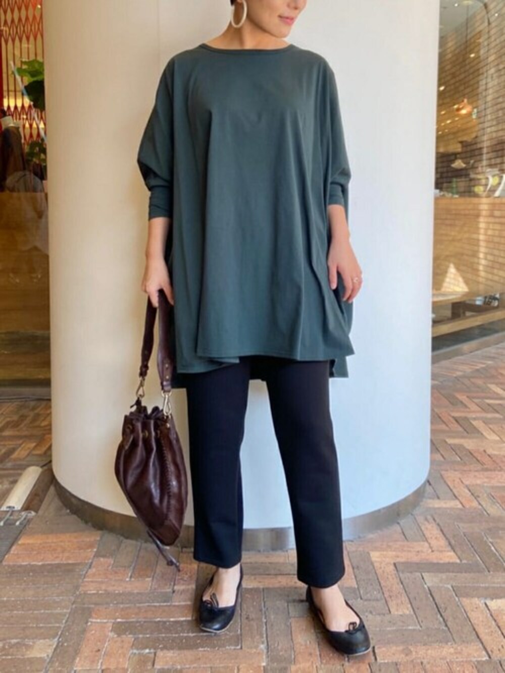 【tops】 着用サイズ:F model:159㎝ 綿素材なので洗濯もしやすく、今からの季節1枚で使えます。 お尻周りもカバーしてくれる長さなので、安心して着て頂けます。 洗濯 :手洗い可 伸縮性:なし 透け感:なし 裏地 :なし 【bottom】着用サイズ:1サイズ ストレッチがかなりきいていて、ストレスフリーなボトムスです。 ウエストには紐とゴムと両方あるのでウエストも調節可能です。 洗濯 :手洗い可 伸縮性:あり 透け感:なし 裏地 :なし 【bag】 レザーバッグ。 ハンドメイド作られている為、一個一個風合いが違います。 長財布やポーチの入るサイズになっています。 shoes pierce staff belongings