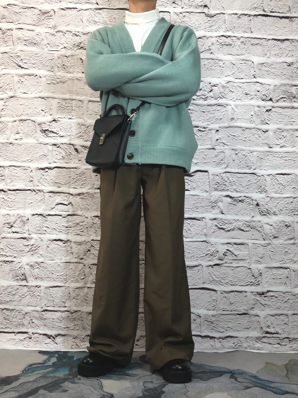 おはようございます☀ 今日はカーディガンを使ったコーデ! 色味はアースカラーとモノトーン タートルネック×カーディガンの組み合わせ良き