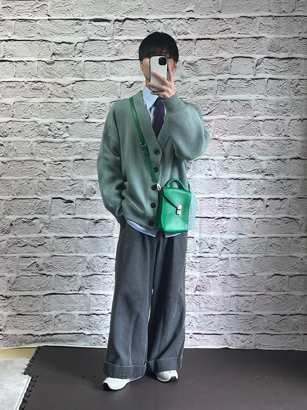 今日はカーディガンを主役にしたコーデ! キレイめなスタイリングにブルー系のワントーンの色味にしてみました。
