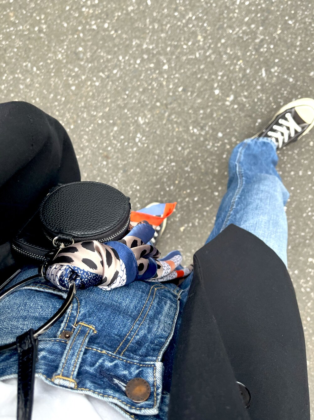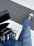 ブルー系のデニムパンツを着用したレディースの春コーディネートの3枚目の写真