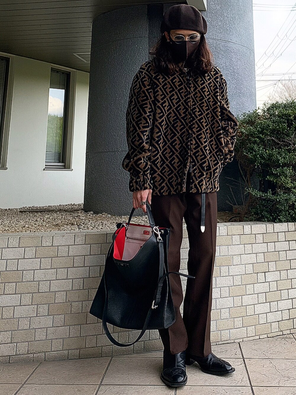 ひろろのライダースジャケット「Fendi Reversible Logo-Print Shearling And Leather Bomber Jacket」を使ったコーディネート