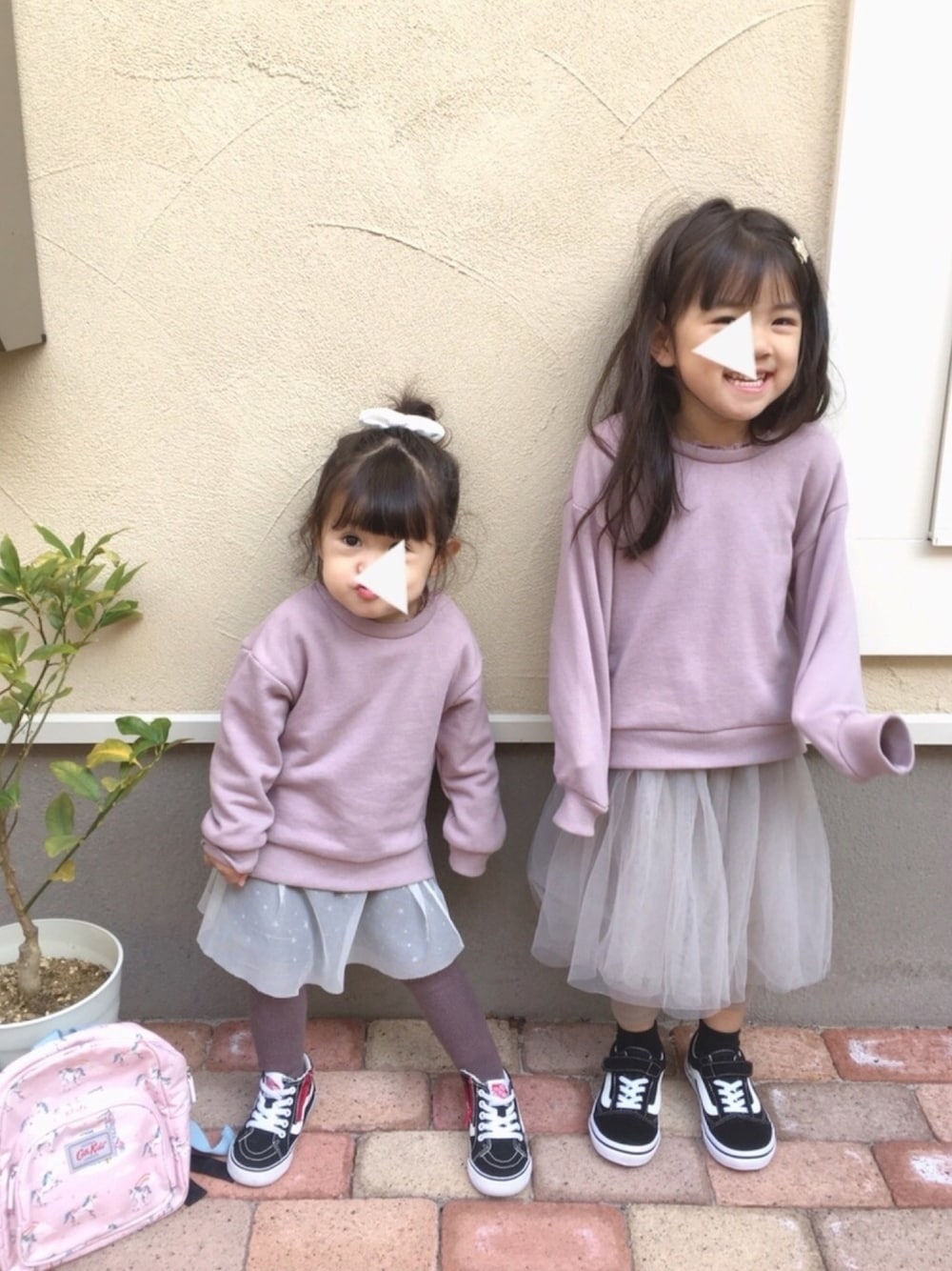 姉妹コーデ* くすみパープルのスウェットは、横からのシルエットもかわいいやつ♡ 見えにくいけど首のところにはフリル付いてます* アウターありver.も小窓に。 リュックは妹くんが自分で選んだピンクでユニコーン柄のやつ。 相当お気に入りらしく、お出かけ前はいつも自分でおやつ詰めて背負ってます(*´-`) ご覧いただきありがとうございます☺︎
