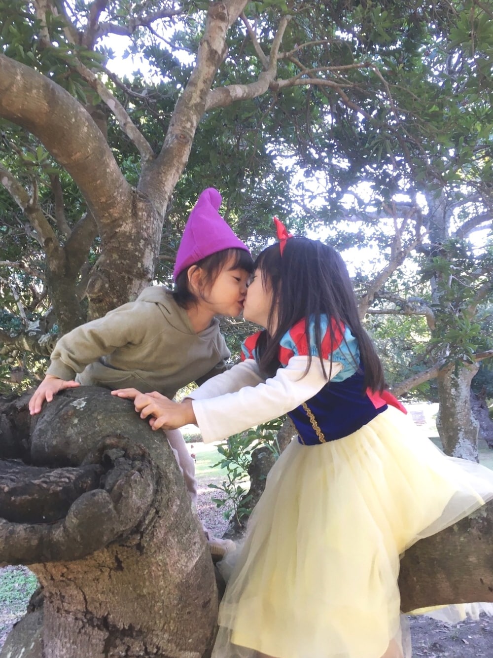 🎃Halloweenみっつめ🎃 去年の白雪姫&小人(ドーピー)ふたたび♡ たまたま寄った公園で☺︎ 妹くん、もう今年はプリンセスじゃないとダメなのかと思ってたけど、なんだかんだで、小人役も大好きみたい😂 小人ワンピ今年は短くなっちゃったけど😂 ご覧いただきありがとうございます☺︎