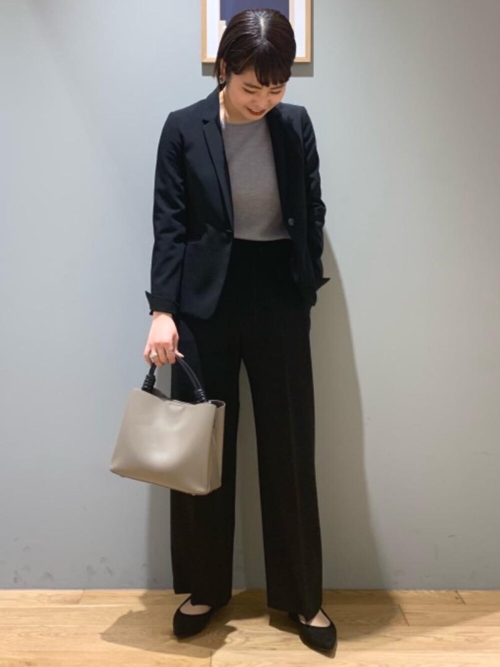 身長:168cm jacket・ pants:40 inner:free shoes:24.5 ジャケット、パンツ共に40を着用しています。ジャケットは薄手のニットを合わせても程よいゆとりがあるサイズ感でした。パンツはくるぶし丈で、フラットシューズ・パンプス共に合わせやすい丈でした。今の時期はニット、春先はブラウス、とインナーを変えていただく事で長くご着用いただけるアイテムです!