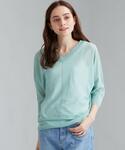 【身長:168cm】 トップスをインすることでウエストのデザインを活かし、清涼感あるカラーで合わせたスタイリングにしました。
