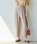 【身長 168cm】 ベージュのパンツをカラートップスに合わせ、程よく落ち着いた印象のスタイリングにしました。