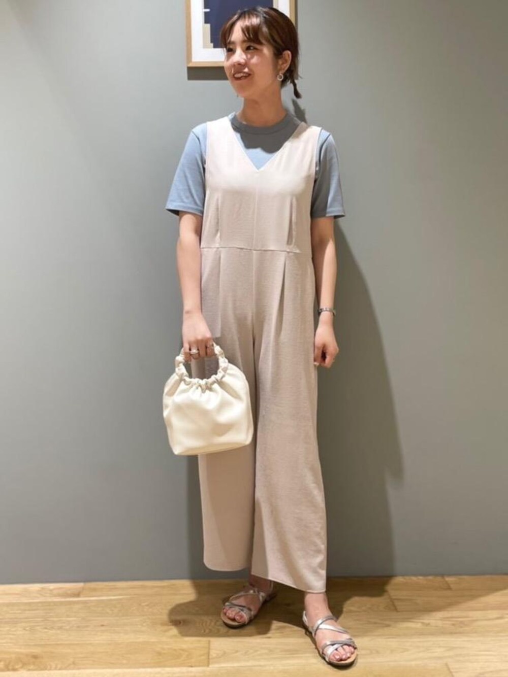 【身長168cm】 ライトブルーとナチュラルの組み合わせで、爽やかな印象のスタイリングにしました。