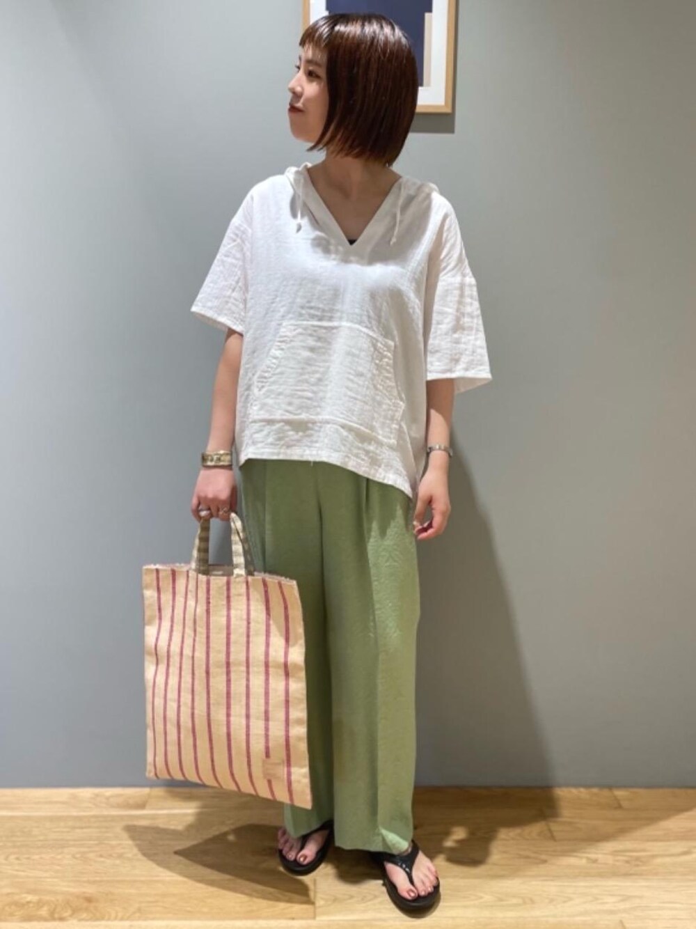 【身長 168cm】 リラックス感のあるトップスにカラーパンツを合わせ、ポイントにしました。