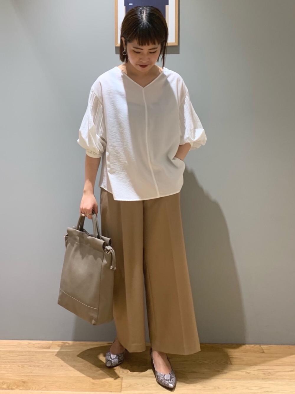 【身長168cm】 カジュアルにもご着用頂けるブラウスを、綺麗めパンツに合わせてスタイリングしました。
