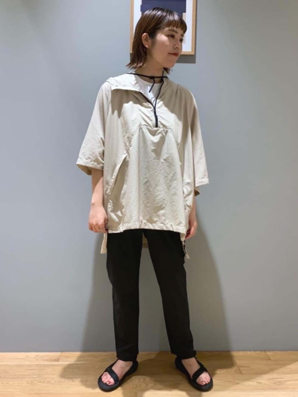 【身長:168cm】 Tanacanaのアノラックを主役に、カジュアルアイテムで合わせ、アウトドアでもご着用頂けるスタイリングにしました。