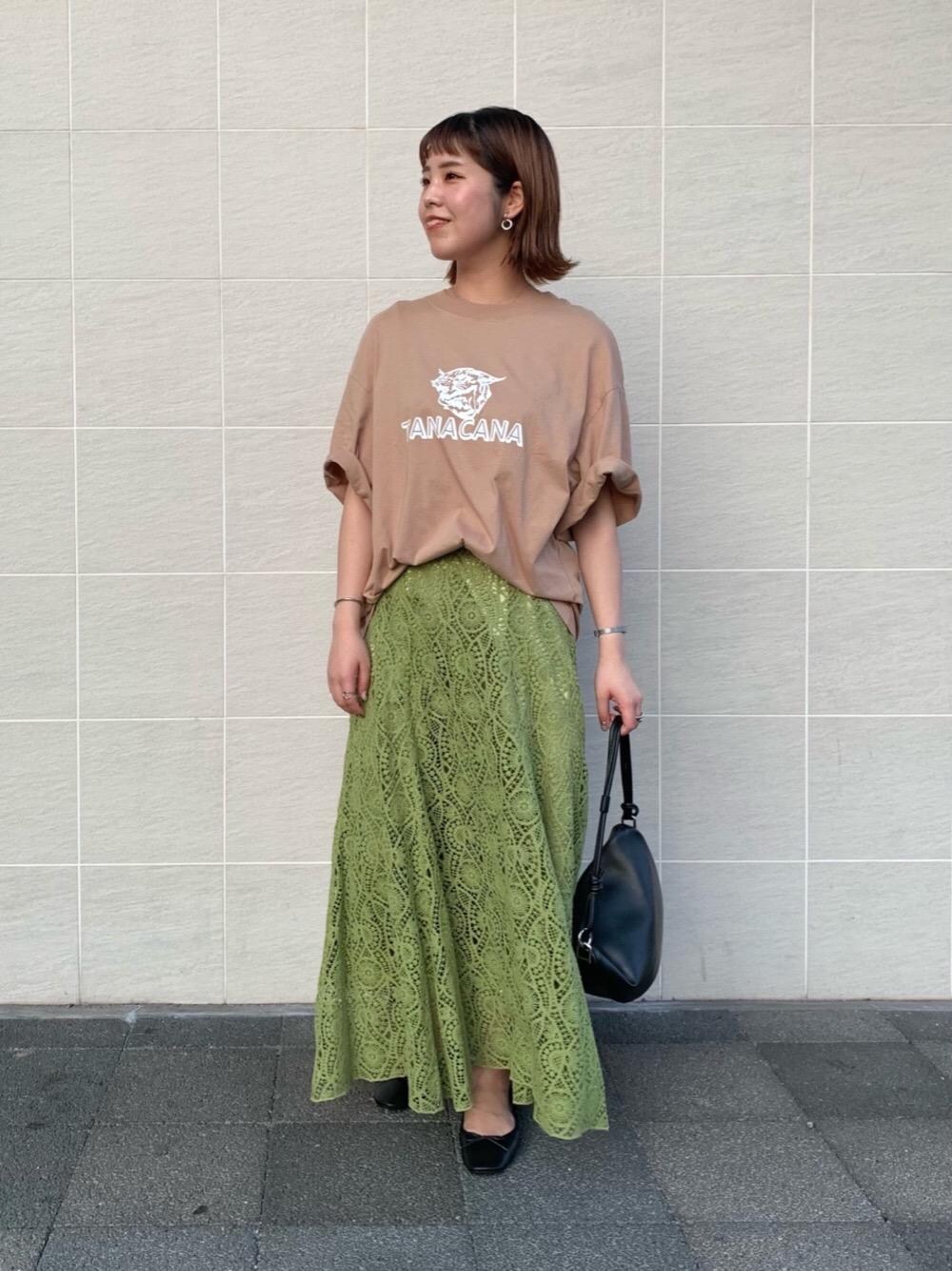 ●身長:168cm ●普段サイズ:トップスM/ボトムス38/シューズ24.5cm 【サイズ感】 トップス:ゆったり スカート:標準的 シューズ:標準的 【コーディネートポイント】 フェミニンなレーススカートにTシャツを合わせ、程よくカジュアルな印象になるよう組み合わせました。カラー×カラーの組み合わせなので、統一感が出るよう小物は黒で合わせたところもポイントです。