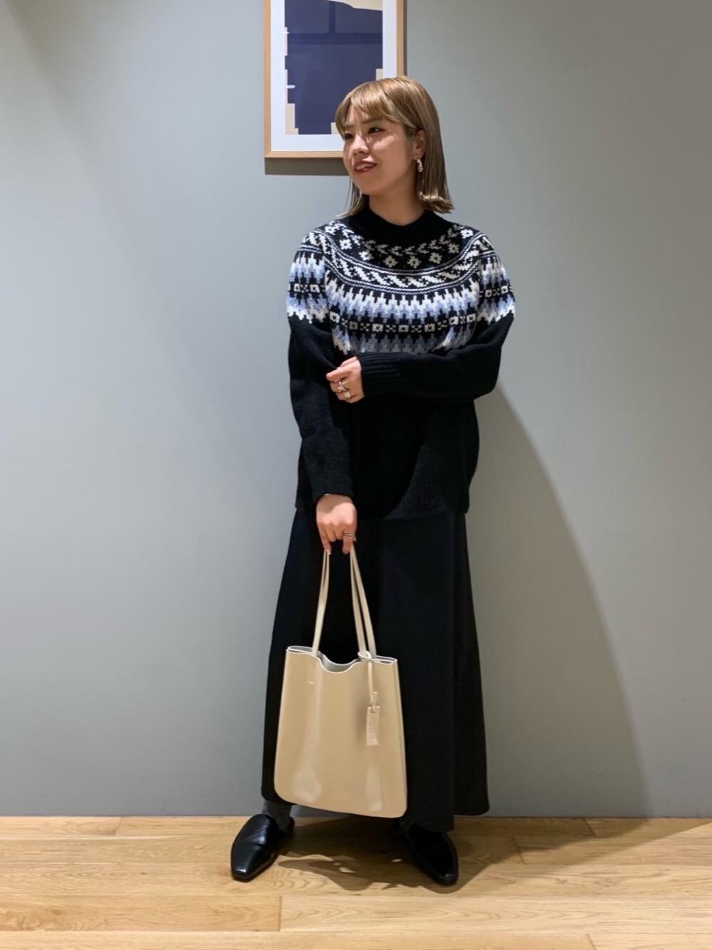 ●身長:168cm ●普段サイズ:トップスM/ジャケット38or40/ボトムス38/シューズ24.5cm 【サイズ感】 ニット:ややゆったり スカート:標準的 シューズ:標準的 【コーディネートポイント】 ボリューム感のあるニットに、落ち感のあるスカートを合わせバランスをとりました。