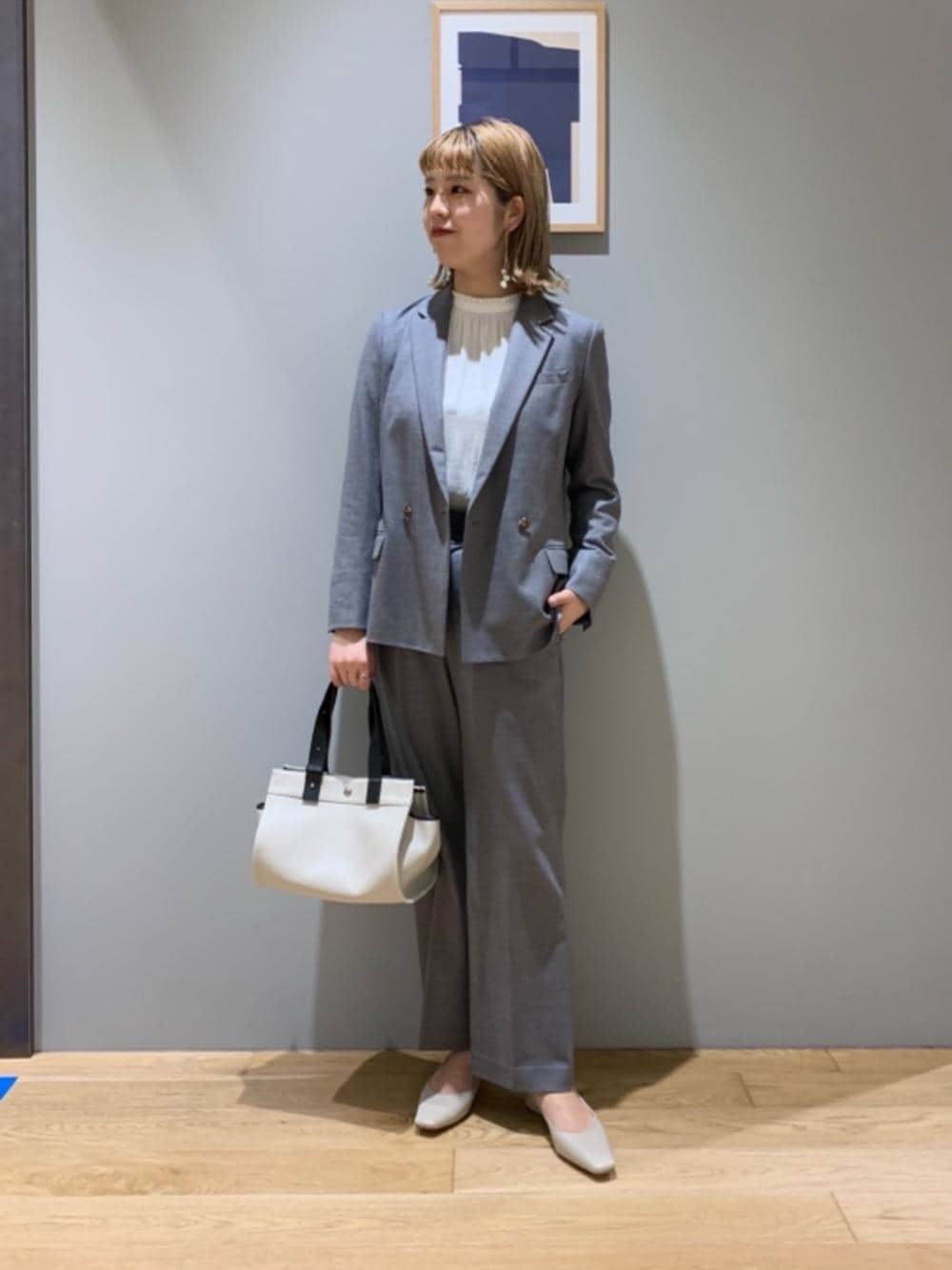 ●身長:168cm ●普段サイズ:トップスM/ジャケット38or40/ボトムス38/シューズ24.5cm 【サイズ感】 ブラウス:ややゆったり ジャケット:標準的 ボトムス:標準的 シューズ:標準的 【コーディネートポイント】 サキソニーのジャケットとワイドパンツをセットで着用しました。気温が下がってきたら、薄手のニットを合わせてご着用いただくスタイリングもおすすめです。