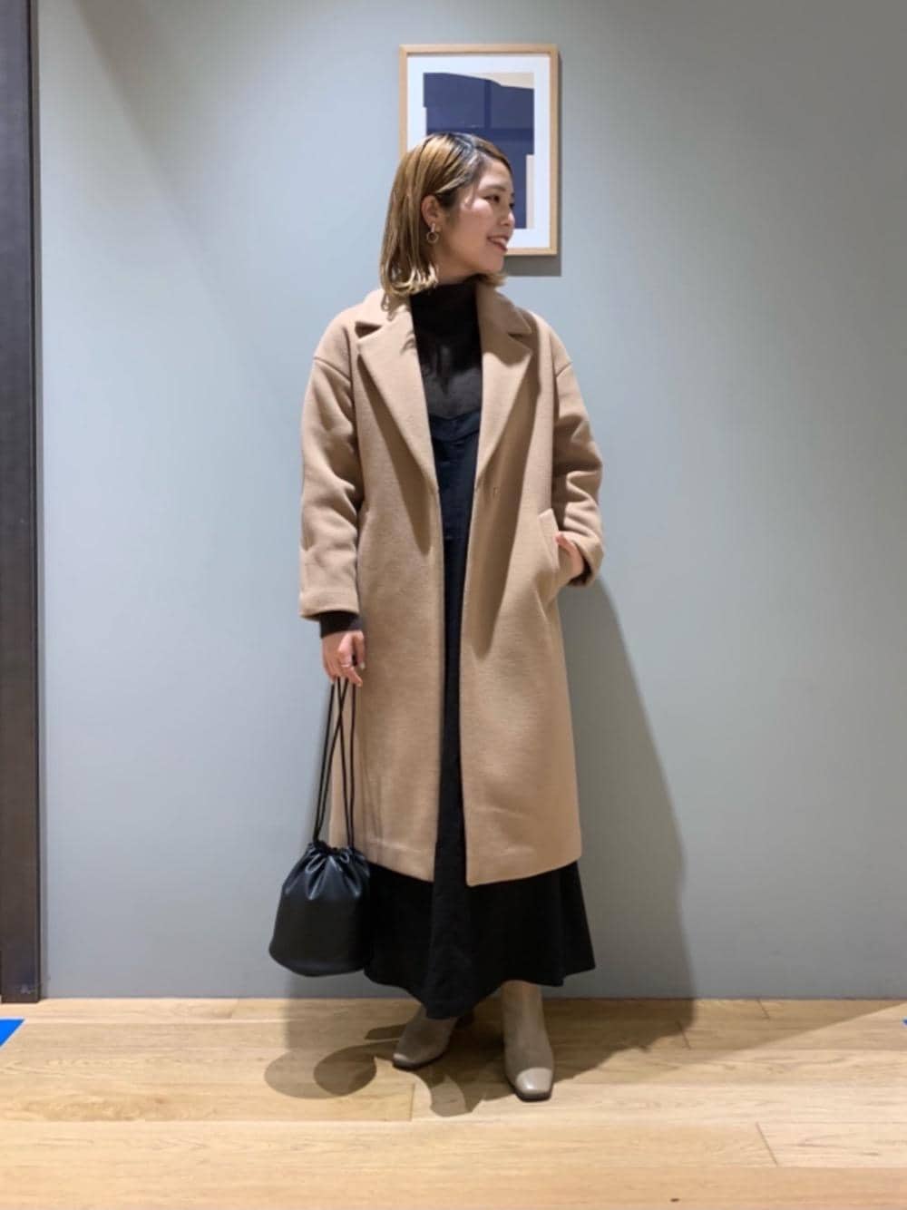 ●身長:168cm ●普段サイズ:トップスM/ジャケット38or40/ボトムス38/シューズ24.5cm 【サイズ感】 ニット:ややゆったり アウター:標準的 ワンピース:標準的 シューズ:標準的 【コーディネートポイント】 キャミワンピースにヘアリーニットを合わせ、柔らかい印象のスタイリングにしました。全体の色味を合わせ、統一感を出しています。