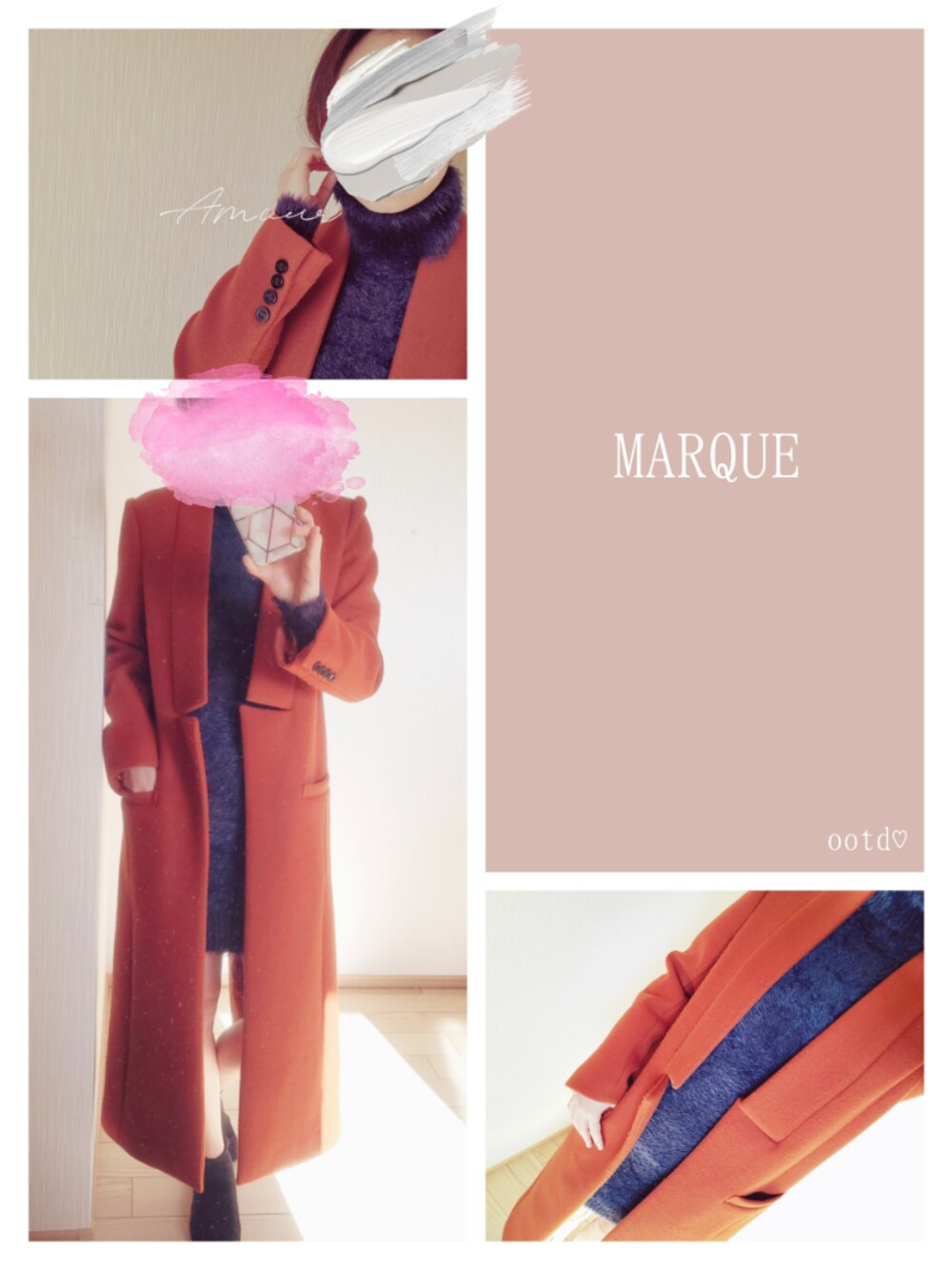 ootd♡ 紺色のワンピースの上に テラコッタカラーのロングコートを合わせた 大人コーデ これにロングブーツでもいいし、 ショートブーツもお洒落♡ 私は黒のショートブーツでお出かけ☆