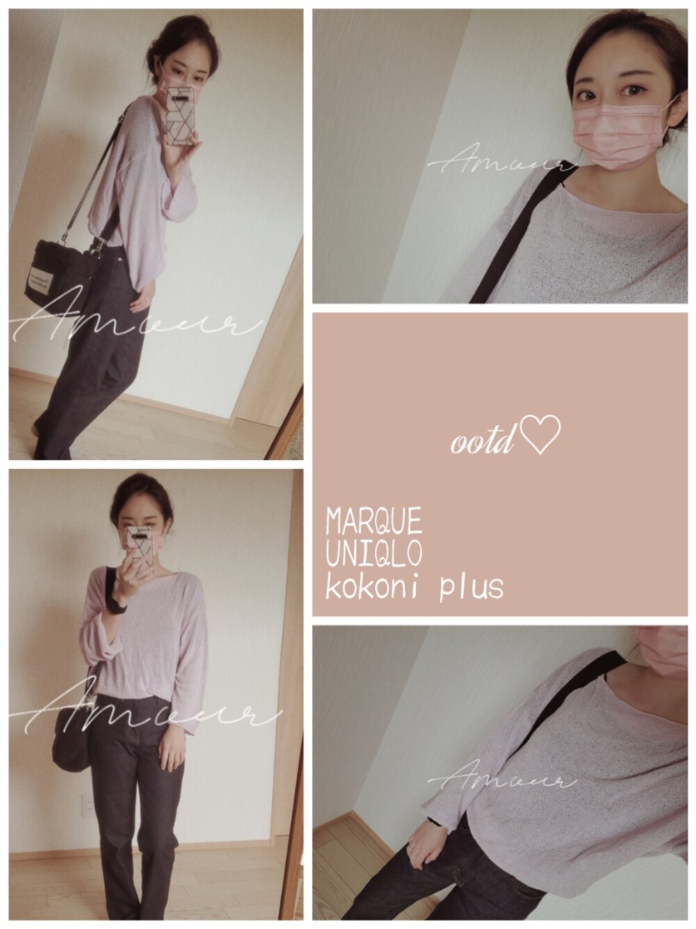 ootd♡ . MARQUEのトップスとUNIQLOのデニム kokoni plusのショルダーバッグ 楽ちんコーデ この組み合わせスキ♡