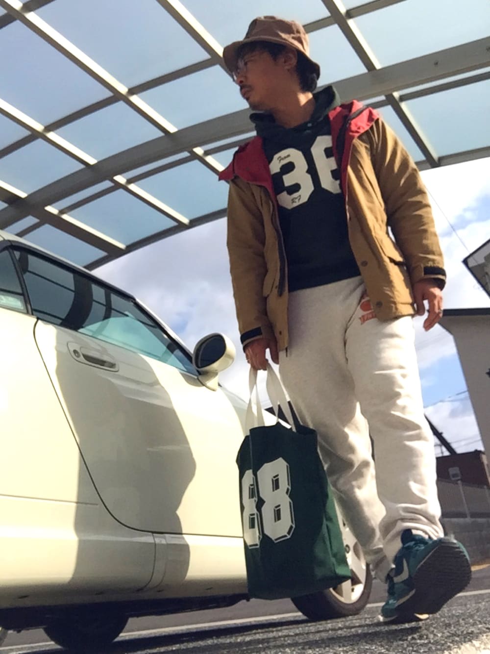 おはようございます、あやとです。 今日のコーデは、 ヘビーデューティースタイル。 バケットハットに、 マウンテンパーカー、 スウェットパーカー、 スウェットパンツ、ナイキシューズ。 春の陽気になりましたね! あっという間に、桜が咲きますね🌸