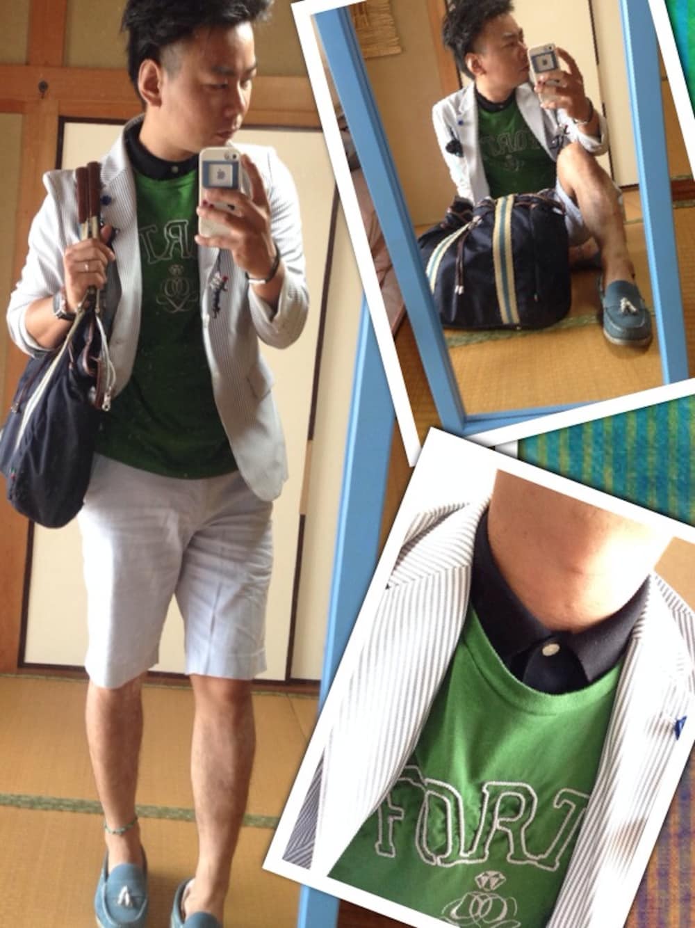 タグのポロシャツ。 Tシャツとの組み合わせにより、 最強になる、 ポロ単品で着るのは、 ルームスタイルと、畑仕事の時で充分^_−☆ ロンストジャケと、ショーツで爽やかに! 胸ポケのサングラスがポイント。 ポロシャツと、ショーツはUNIQLO。