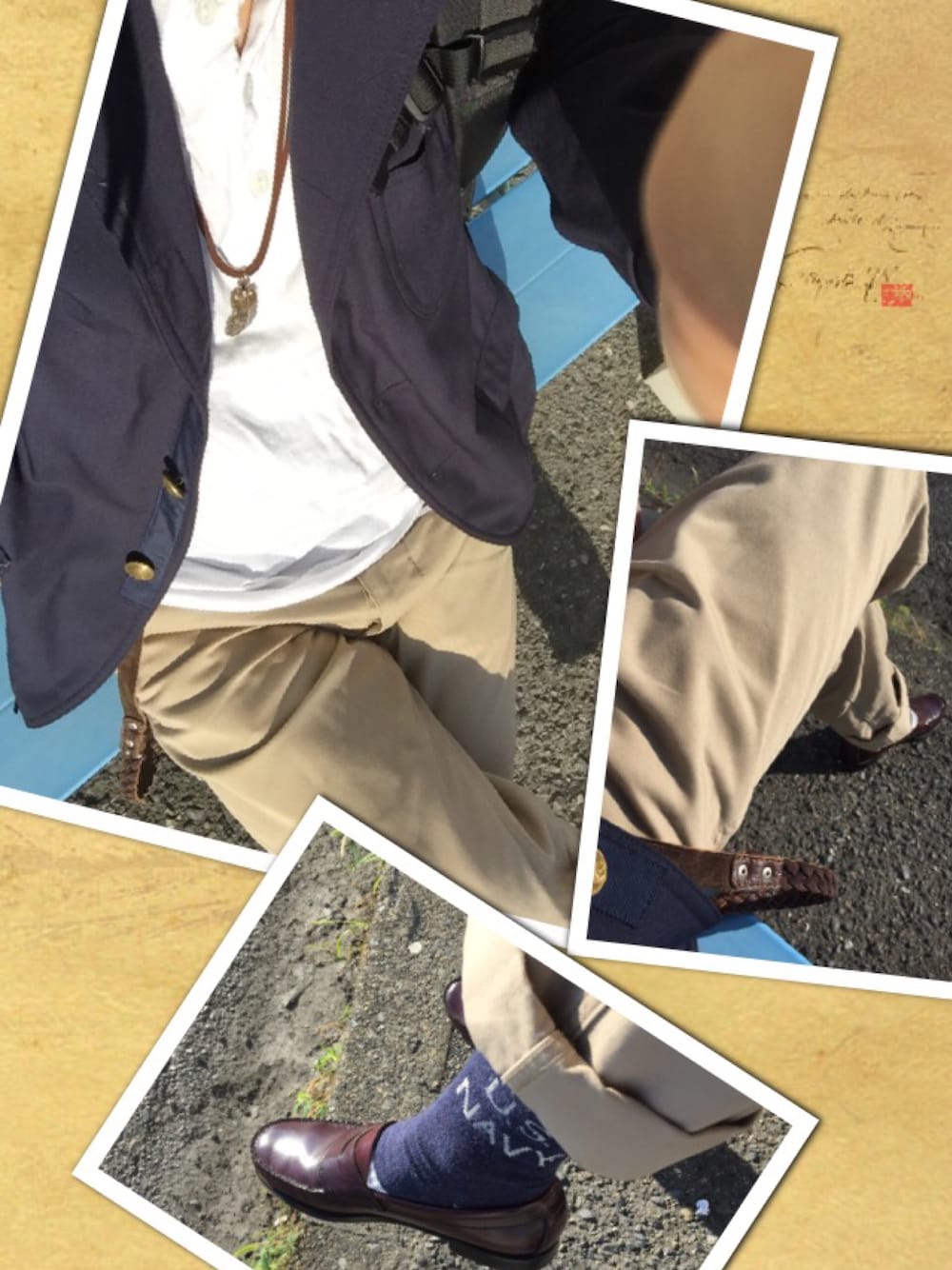 明日は健康診断。 家族がコストコでケーキを買ってきて、最近頑張って処理してるので、太ったかな(´・Д・)」心配です。 今日は紺ブレに41カーキチノ。革のサスペンダーは古着屋で購入。 すっかり秋ですね、半袖は飽きましたしね。
