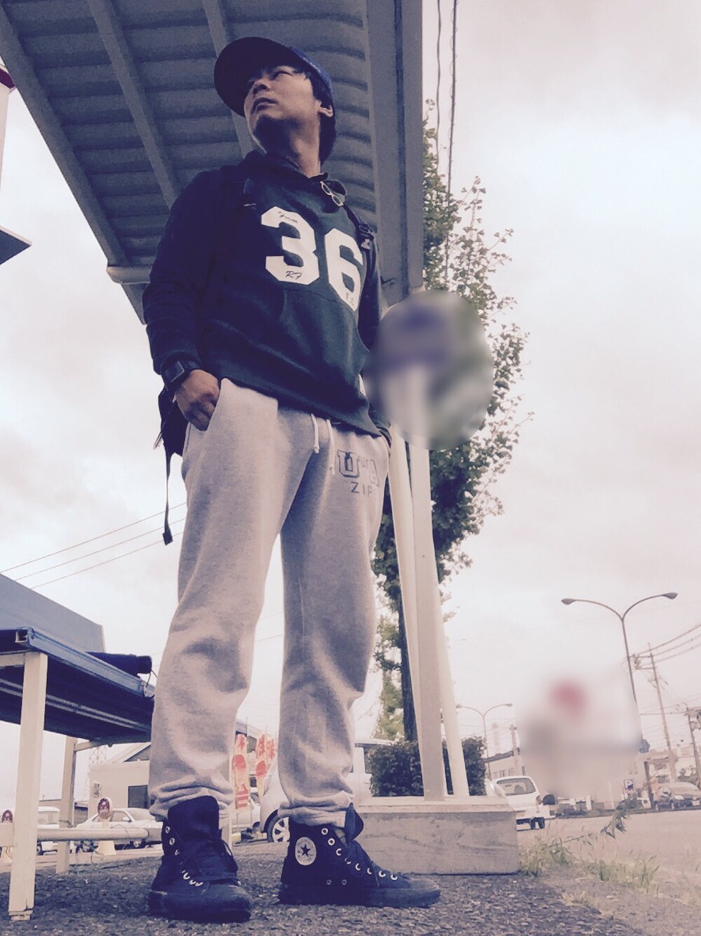 バス待ち。 折りたたみ傘、壊れてました。