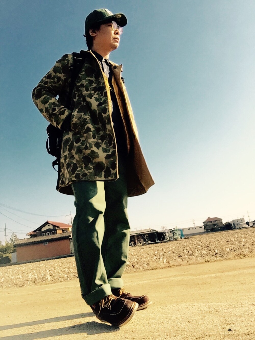 おはようございます、あやとです。 バスが目の前で通り過ぎてしまいました(´・Д・)」💦 一本遅いバス、さらに遠回りして、さらに渋滞に巻き込まれるバスに乗りました。あなたのファッションアドバイザーあやとです。 さて、 安心してください、筋肉痛になってませんよ(^ー^)ノちなみに、ハニーは筋肉痛です。 さて、 リバーシブルコートを使ったヘビーデューティーmixコーデです。このコート、なんと!60/40クロスなんです。パンツは初登場、GUNGHOのラギッド別注ベイカーパンツ。それと、おなじみレッドウィングの、ラギッド別注ですね! さ、今日頑張ったら、明日お休みです。 明日はハニーと一緒にカミュのドッグランに出掛けたいと思います(^ー^)ノ