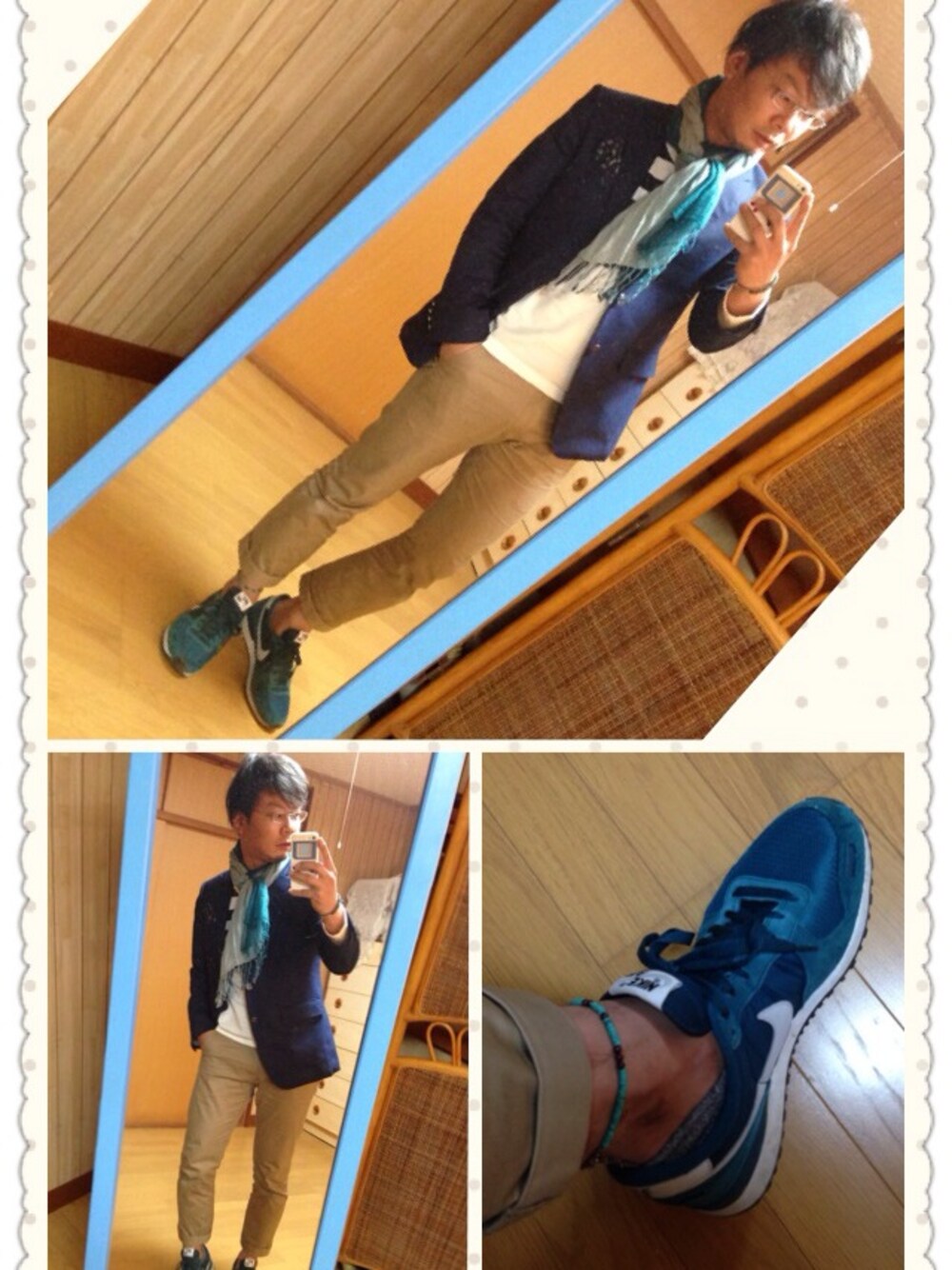 今日はマリンカジュアル。今日はマジメガネです、さて、これから仕事ですー頑張りますか!