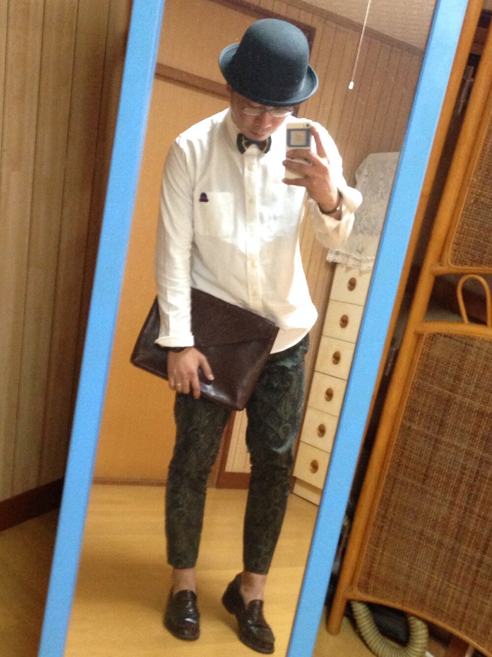 今日はシンプルに、オックスフォードシャツを使ったコーディネート。カジュアルな蝶タイと、ペイズリー柄のクロップドパンツは崩しです。 ちなみに、今日は誕生日、いつの間にか37歳に∑(゚Д゚)