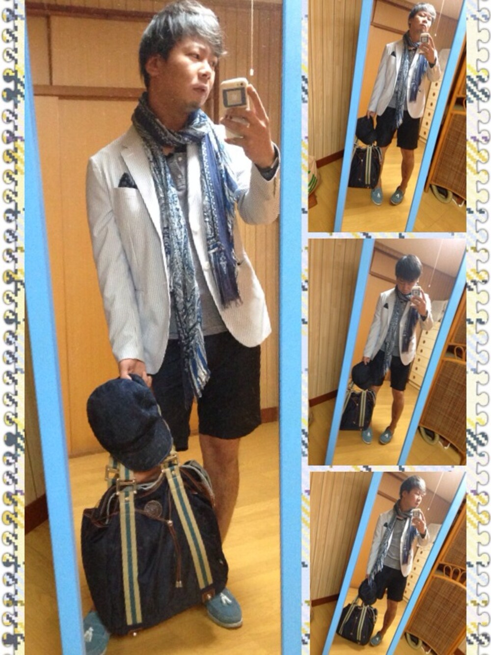 爽やかなジャケット、ショーツスタイル。トートはオロビアンコ。