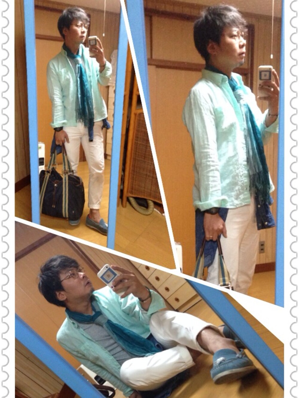 今日はリネンのミントグリーンに初挑戦です^_−☆全体的に薄いカラーで、統一感を出し、バックのネイビーで締めています。