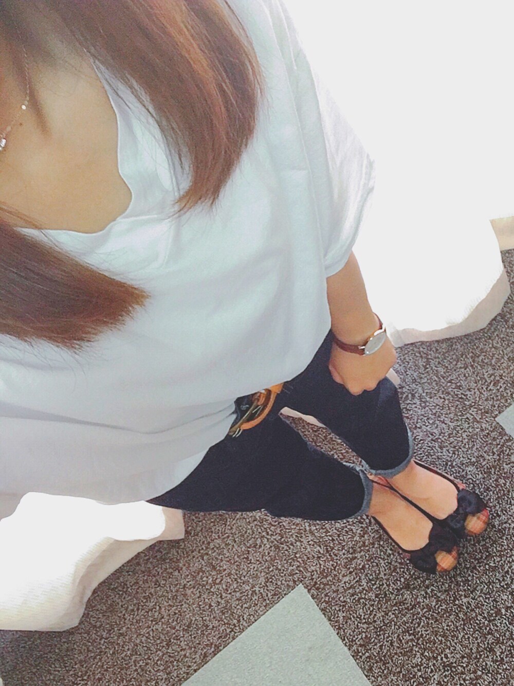 まよ ちゃんのTシャツ/カットソー「VネックビックTシャツ」を使ったコーディネート