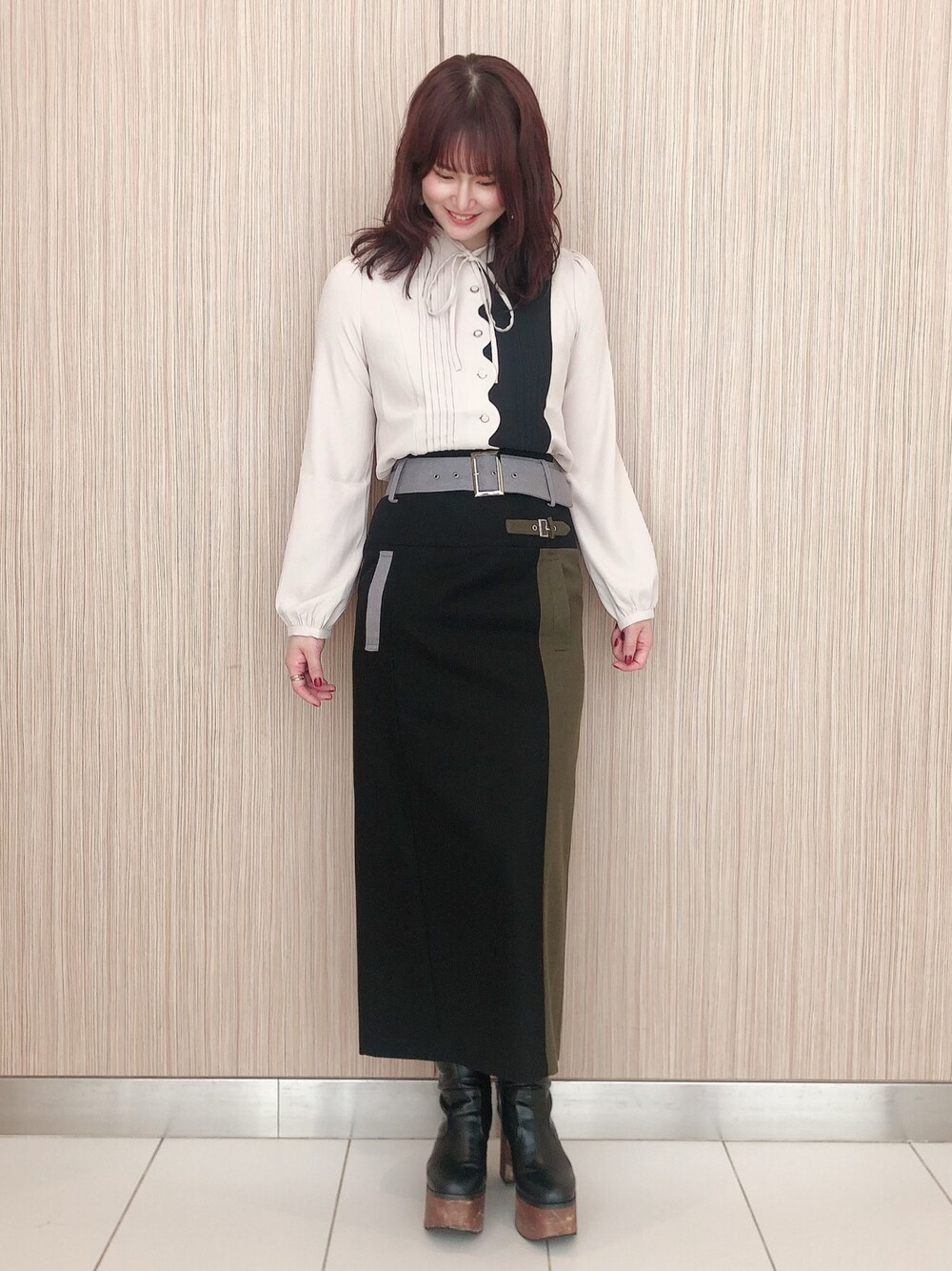 Maのスカート「バイカラータイトスカート」を使ったコーディネート