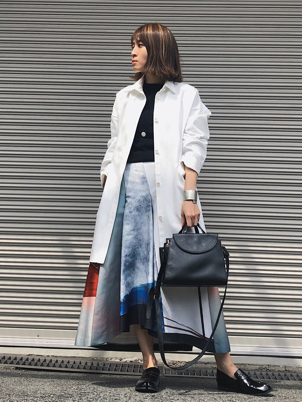 今日は暑くて もうアウターいらんかも。 今年全然アウターの出番なかったなぁ。笑 このスカートは お気に入りのameri アシメと柄が水彩画っぽくて可愛い