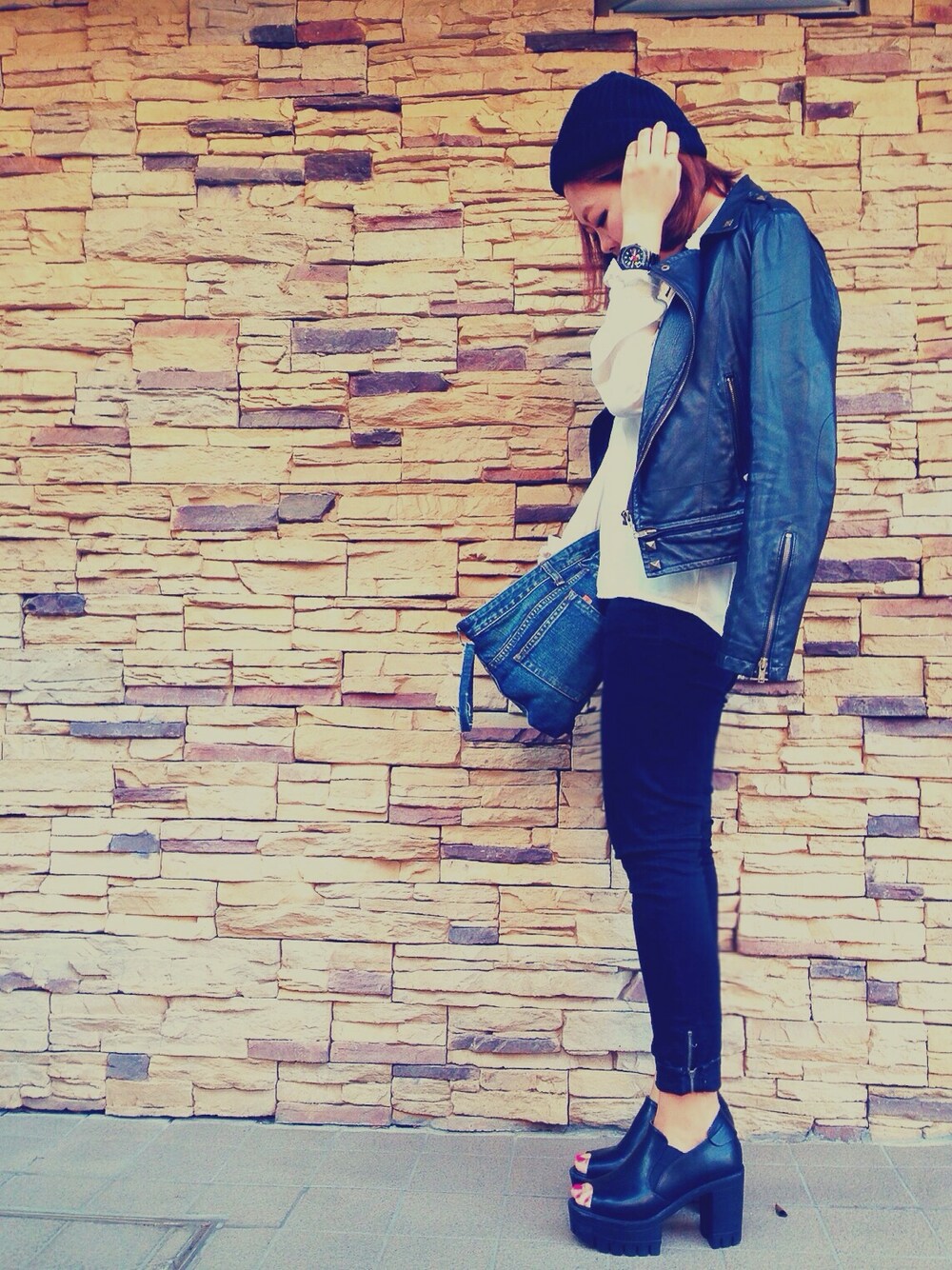 シフォンシャツにブラックパンツのシンプルコーデ。 cap:moussy outer:bumble bee pants:forever21 shoes:korea acc:chanel instagram @ma7monster