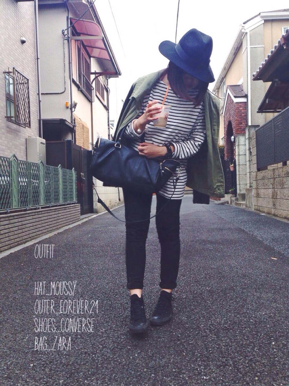 二日酔いの今日は 寝不足で起きてすぐ予約していた美容室へ。 彼のカットソーで。今日はちょっと寒かったね。雨も降ったみたい☔️☔️わーお。 outfit hat...moussy outer...forever21 shoes...CONVERSE bag...zara instagram 👉ma7monster followme♡