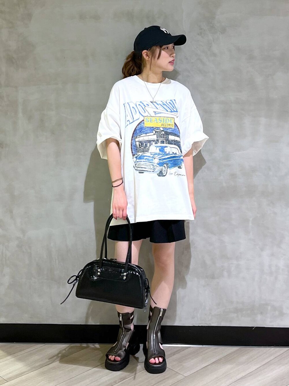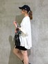 ご覧いただきありがとうございます(^_^)❤︎ カジュアルオシャレコーデです トップス 前年の大人気商品アップデートです!! オーバーのサイズ感を今年のトレンドらしいサイズ感でとても着やすいです❤︎ フロントの車のプリントもかわいい! ボトム Tシャツをワンピみたいに着たくてショートパンツ合わせしてみました! 丈感が短すぎずちょうど良い◎ ハイウエストで脚長効果もありです!
