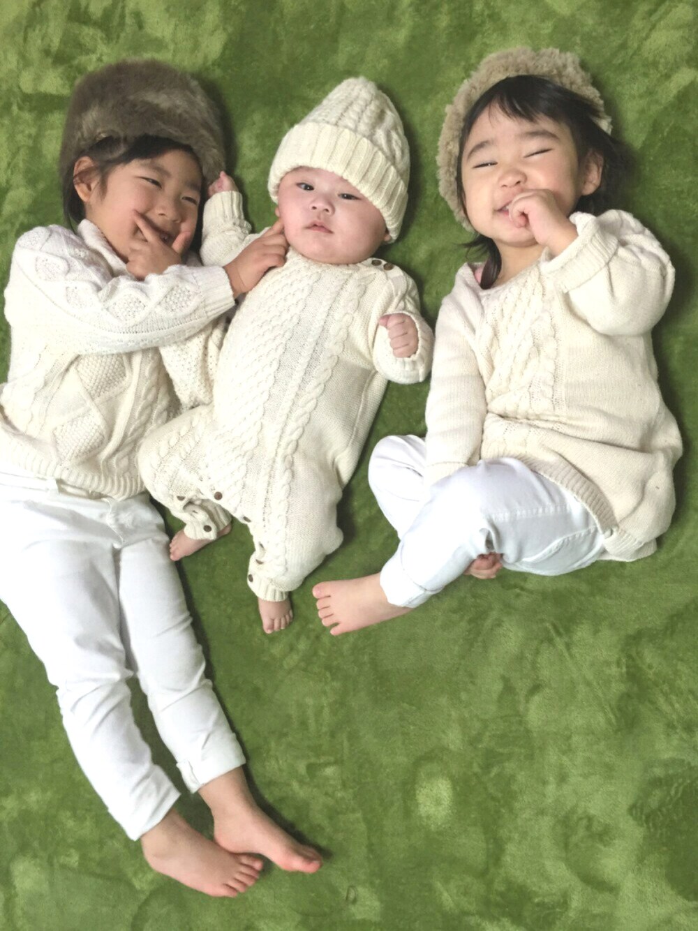 久しぶりのアップです🙈 飽き性な私… やはりwearに向いていない…😓 白ニットで3人リンク💕 長男のホワイトコーデはななが 1年ほど前によく着てたもの😆