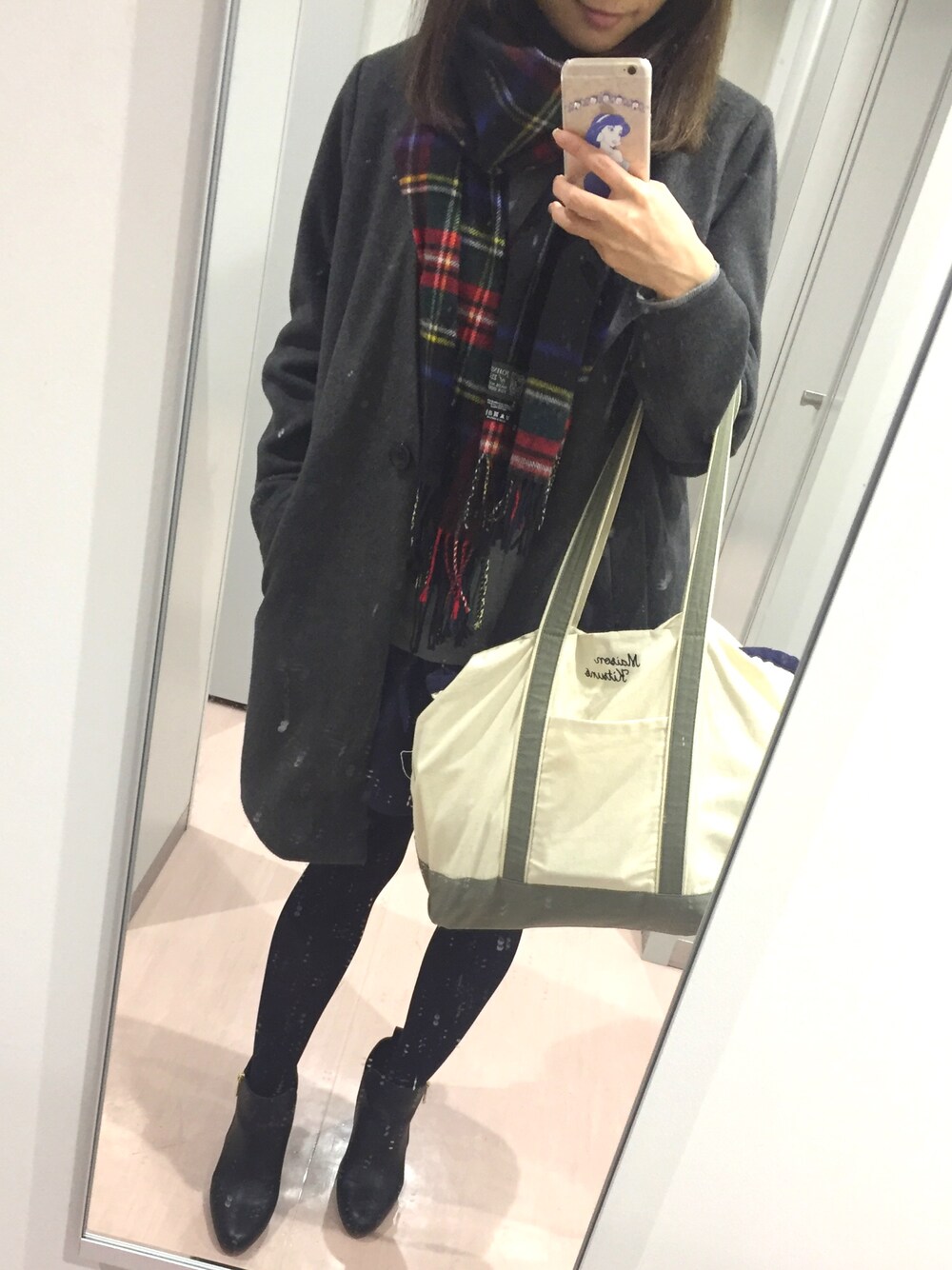 Mのトートバッグ「MAISON KITSUNÉ Logo-embroidered canvas tote」を使ったコーディネート