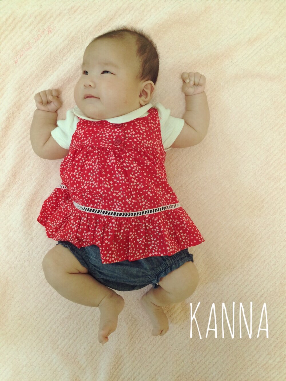 お風呂上がりのかんなちゃん…♡ さっそく前に購入していた オールドネイビーの洋服着せた♡ 襟付きの肌着は首がないから 苦しそうだっ笑