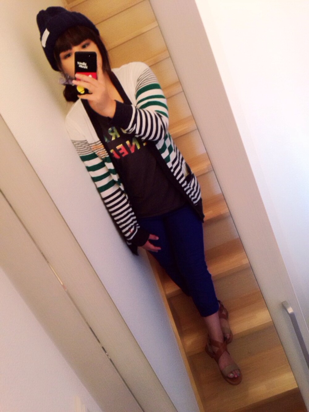 この秋はブルーが好きです*\(^o^)/* ブルーのパンツはGUでさえ丈が長かったので、丈詰めてもらったら…だったので巻き巻きしてみた笑 エダーのサンダル‼︎ペタンペタンって音出るのが可愛い\(^o^)/