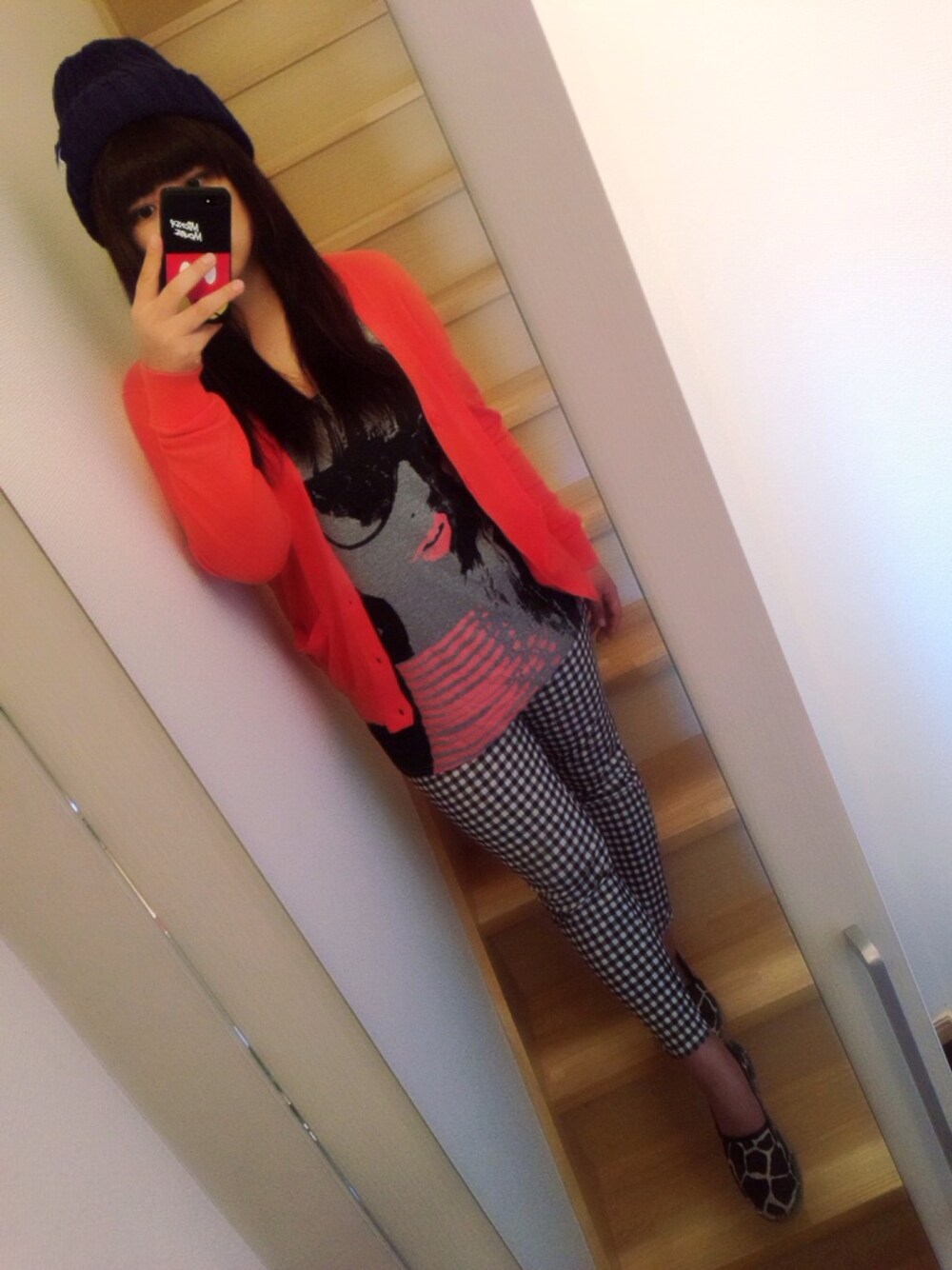 あっつーい‼︎けど、夜寒ーい‼︎ 休みが遠くてへこたれそう(>_<)ってことで、元気出す為にオレンジで明るく行きます‼︎*\(^o^)/* パンツは確かUNIQLOで、キリン柄の靴は忘れたけどお気に入りです( ̄^ ̄)ゞ