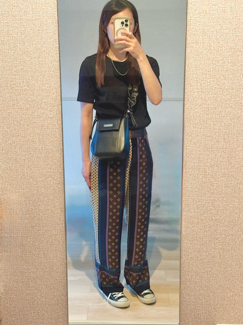 今日は友達と遊ぶので手抜きすぎず、 でも雨なので濡れてもいい格好に。 お気に入りの色味で大好きなパンツ👖 サラッとして履きやすく長年愛用しています🌟 落ち着いたカラーでまとめました🖤