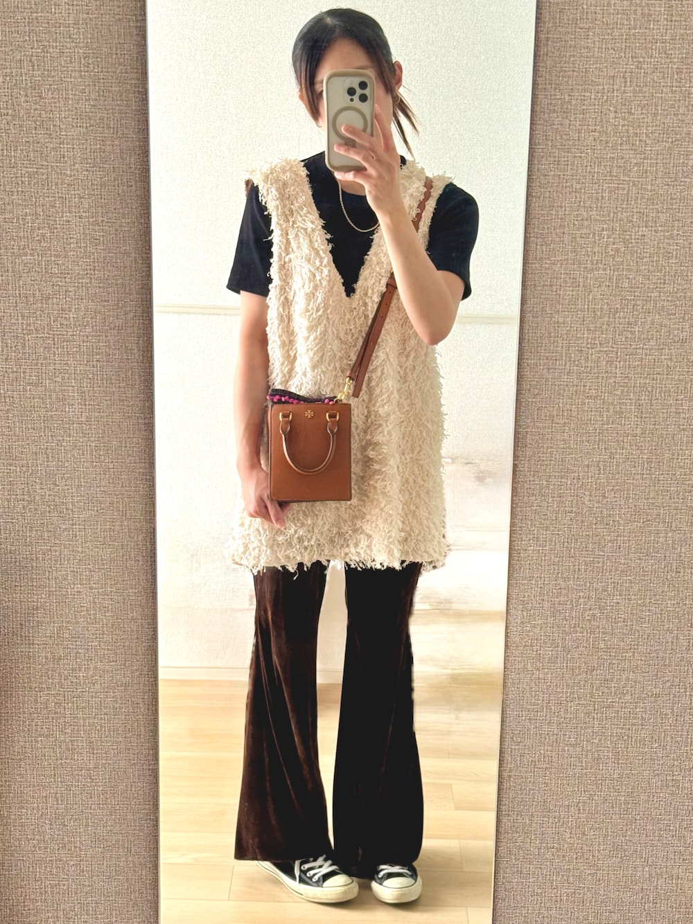 暑さの残る秋🍂 ベロアのフレアパンツにレイヤードコーデ シンプルだけどオシャレに